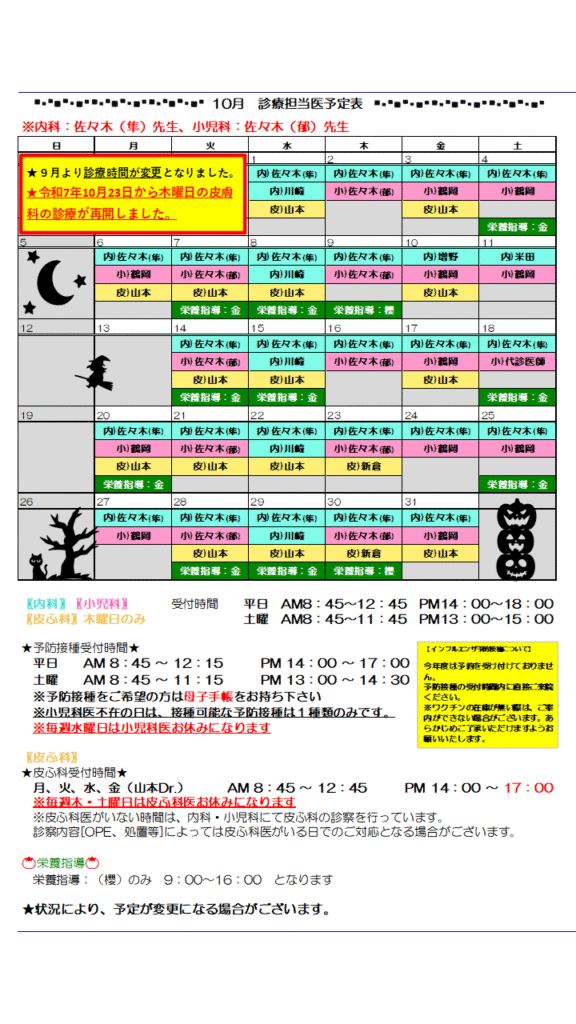 10/23(木)から毎週木曜日の皮膚科診療が再開いたします。